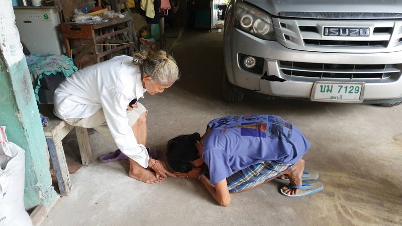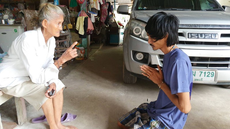 ก่อนที่ทางเจ้าหน้าที่จะนำตัวนายเอ็มไปส่งพนักงานสอบสวน สภ.เมือง ลพบุรี ผู้สื่อข่าวได้ถามว่าก่อนเทศกาลปีใหม่ และครั้งนี้คงจะติดคุกนาน อยากจะกราบเท้าแม่เพื่อขอโทษที่ทำร้าย ทุบตีแม่สักครั้งไหม นายเอ็มยอมทำตามก้มลงกราบเท้าแม่ ทำให้นางบุญส่งถึงกับน้ำตาไหลพราก ใช้มือลูบหัวพร้อมกล่าวกับลูกด้วยความรักว่าขอให้เลิกให้ได้ ขอให้เอ็มกลับมาเป็นลูกของแม่เหมือนเดิมได้ไหม รับปากแม่ได้ไหม ซึ่งนายเอ็มได้แต่เพียงพยักหน้าก่อนเจ้าหน้าที่จะนำตัวไปให้ทางเจ้าหน้าที่ตำรวจดำเนินคดีตามกฎหมายต่อไป