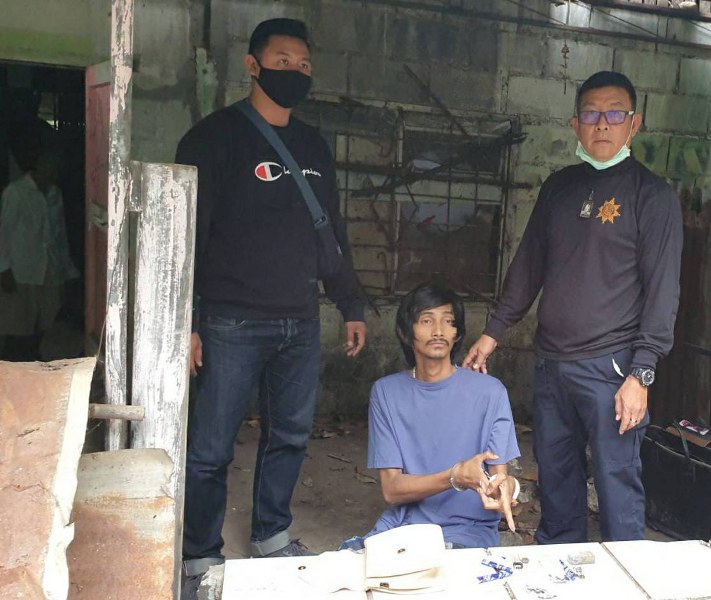 ฝ่ายปกครองป้องกันอำเภอเมืองลพบุรี จึงไประสานนายศักดิ์ชาย เสตานุช ผู้ใหญ่บ้านหมู่ที่ 1 ต.ทะเลชุบศร พร้อมชุดเฉพาะกิจทะเลชุบศร ลงพื้นที่บ้านที่เกิดเหตุทันที พบนายสุรสิทธิ์ ชิตสุข หรือนายเอ็ม อายุ 33 ปี ลูกชายของนางบุญส่ง ผู้ที่อยู่ในอาการคลุ้มคลั่งได้เมื่อเห็นเจ้าหน้าที่ได้พยายามกระโดดหลบหนีไปหลังบ้าน แต่เจ้าหน้าที่ไวกว่าคว้าตัวไว้ได้พร้อมของกลางเป็นยาบ้าหลงเหลืออยู่ 2 เม็ด อุปกรณ์การเสพหลายชิ้น จึงได้ทำการสอบสวน ในเบื้องต้น ซึ่งนายเอ็มยังอยู่ในอาการเมายาอย่างหนัก พูดจาเพ้อเจ้อ วกวน ด่าทอเจ้าหน้าที่ด้วยถ้อยคำที่หยาบคาย