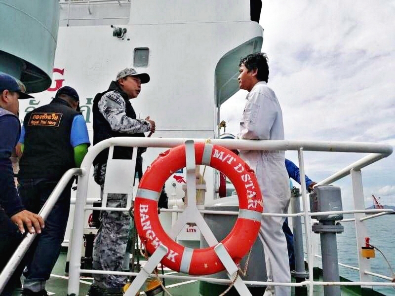 โดยสั่งการให้ น.ต.จตุพร จตุทอง ผู้บังคับการเรือหลวงสัตหีบ (ร.ล.สัตหีบ) เรือตรวจการณ์ใกล้ฝั่ง 270 (ต.270) นายทหารพระธรรมนูญ ทรภ.1 พร้อมเจ้าหน้าที่ชุดตรวจ ศคค.ชลบุรี เข้าทำการตรวจสอบ พบเรือในบริเวณดังกล่าว จำนวนทั้งสิ้น 14 ลำ ประกอบด้วย เรือบรรทุกแก๊ส 1 ลำ เรือบรรทุกน้ำมัน 8 ลำ เรือบาส 3 ลำ และเรือขนส่งสินค้า 2 ลำ