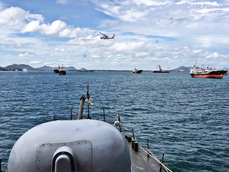 กองทัพเรือโดยทัพเรือภาคที่ 1 ส่งเรือรบ อากาศยาน พร้อมด้วยกรมเจ้าท่า และชุดรักษาความมั่นคงและความสงบเรียบร้อย จ.ชลบุรี (ศคค.ชลบุรี) เข้าตรวจสอบเรือบรรทุกสินค้าขนาดใหญ่ จอดเกลื่อนทะเลน่านน้ำแสมสาร อ.สัตหีบ กีดขวางเส้นทางจราจรทางเรือประมงพื้นบ้าน พร้อมส่งเรื่องให้กรมประมงและกรมเจ้าท่าดำเนินการตามกฏหมายต่อไป