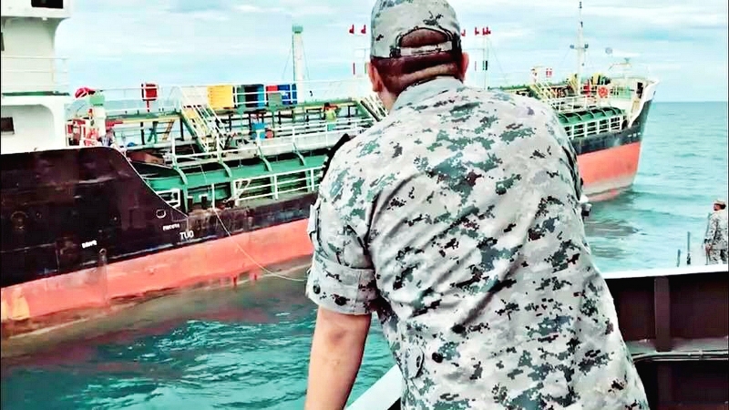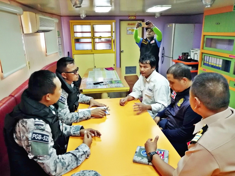 และจากการสอบถามกัปตันเรือ สาเหตุที่มาจอดบริเวณนี้ เพื่อหลบคลื่นลมและรอแผนการรับน้ำมันเชื้อเพลิงที่ท่าเรือมาบตาพุด ในการนี้ทรภ.1 ได้ประสาน VTS ศรีราชา เจ้าท่าระยอง เจ้าท่าพัทยา และให้ ร.ล.สัตหีบ พร้อมด้วยชุดตรวจของ ศคค.ชลบุรี แจ้งเรือดังกล่าวให้นำเรือไปจอดยังพื้นที่ที่เจ้าท่าได้ระบุไว้ (มาบตาพุด) ซึ่งเรือต่าง ๆ จะเร่งดำเนินการให้เสร็จสิ้นโดยเร็ว พร้อมสั่งการให้ ร.ล.สัตหีบ จอดเรือบริเวณพื้นที่ ก.แสมสาร เพื่อสังเกตุการณ์และติดตามผลการปฏิบัติ ในการเปลี่ยนจุดจอดของเรือสินค้าให้เป็นไปด้วยความเรียบร้อยต่อไป
