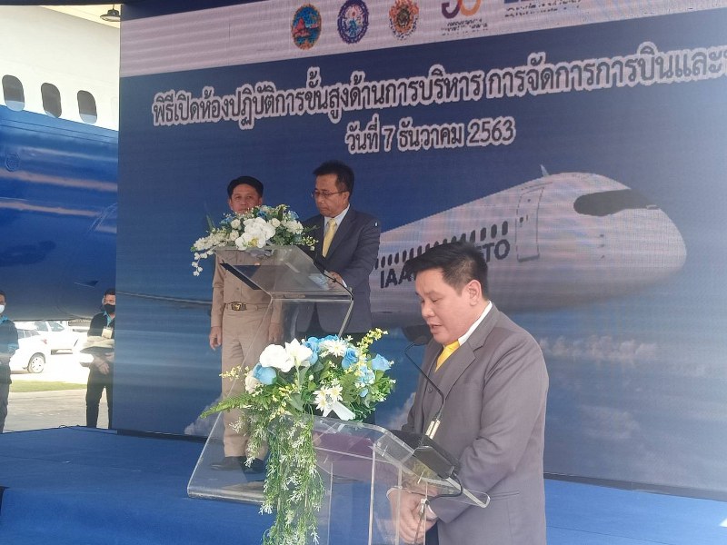 และในช่วงบ่าย นายสำราญ รอดเพชร ผู้ช่วยรัฐมนตรี ให้เกียรติเป็นประธานเปิดห้องปฏิบัติการชั้นสูงด้านการบริหาร การจัดการการบินและบริการ โดยมี นายภัครธรณ์ เทียนไชย ผู้ว่าราชการจังหวัดชลบุรี ศาสตราจารย์สุนทร บุญญาธิการ ประธานคณะกรรมการปฏิบัติหน้าที่แทนสภามหาวิทยาลัยเทคโนโลยีราชมงคลตะวันออก รองศาสตราจารย์ ดร.ฤกษ์ชัย ฟูประทีปศิริ รักษาราชการแทนอธิการบดีมหาวิทยาลัยเทคโนโลยีราชมงคลตะวันออก พร้อมด้วยคณะผู้บริหารมหาวิทยาลัยเทคโนโลยีราชมงคล ทั้ง 8 แห่ง ร่วมพิธีเปิดห้องปฏิบัติการขั้นสูงด้านการบริหารการจัดการการบิน RMUTTO Airline ชมห้องปฏิบัติการบินจริงบนเครื่องบิน MD-80 และรับชมการสาธิตอุปกรณ์ความปลอดภัยบนเครื่องบิน(Inflight Safety Demonstration) โดยนักศึกษาสถาบันเทคโนโลยีการบินและอวกาศ มทร.ตะวันออก และพูดคุยแลกเปลี่ยน ทัศนคติ การบริหารงาน ในการขับเคลื่อนมหาวิทยาลัยเทคโนโลยีราชมงคลตะวันออก ณ เครื่องบิน MD-80 มหาวิทยาลัยเทคโนโลยีราชมงคลตะวันออก