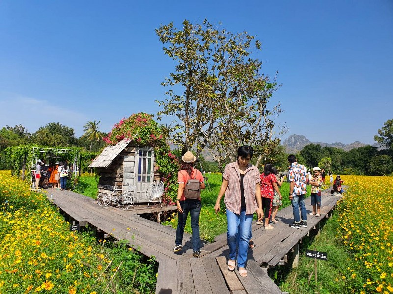 นักท่องเที่ยวจำนวนมาก อาศัยในช่วงวันหยุดยาว หลั่งไหลสู่ถนนสายดอกไม้สวย เที่ยวชมเชลฟี่ ความงามของทุ่งทานตะวันบาน ดอกคอสมอส ดอกดาวกระจาย ที่กำลังออกดอกบานสะพรั่งหลายแปลงในพื้นที่ลพบุรีที่เกษตรกรคัดสรรพันธุ์สวยงามมาปลูกเอาใจนักท่องเที่ยว นอกจากนี้นักท่องเที่ยวยังมีโอกาสได้ซื้อสินค้าพื้นบ้านคุณภาพดีราคาถูก ของฝาก และของที่ระลึกมากมายสร้างรายได้เป็นกอบเป็นกำเข้าสู่เมืองลพบุรี