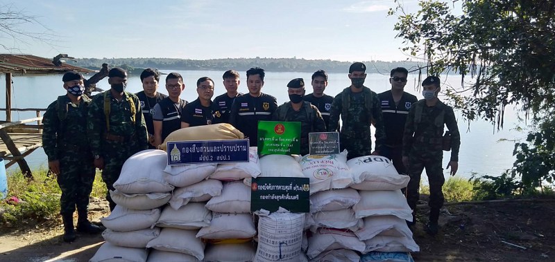 มุกดาหาร – ทหารกองกำลังสุรศักดิ์มนตรี ตรวจยึดปลายข้าวสารเถื่อน จำนวน 32 กระสอบ น้ำหนักประมาณ 1,600 กิโลกรัม บริเวณริมฝั่งแม่น้ำโขง บ้านหว้านน้อย ตำบลหว้านใหญ่ อำเภอหว้านใหญ่ จังหวัดมุกดาหาร