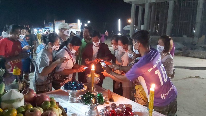 นอกจากนี้ชาวบ้านที่มาร่วมพิธียังได้นำ โทรศัพท์มือถือไปถ่ายในขันน้ำมนต์เพื่อส่งเลขจากดอกน้ำมนต์เพื่อนำไปเสี่ยงโชคซื้อล็อตเตอร์รี่อีกด้วย