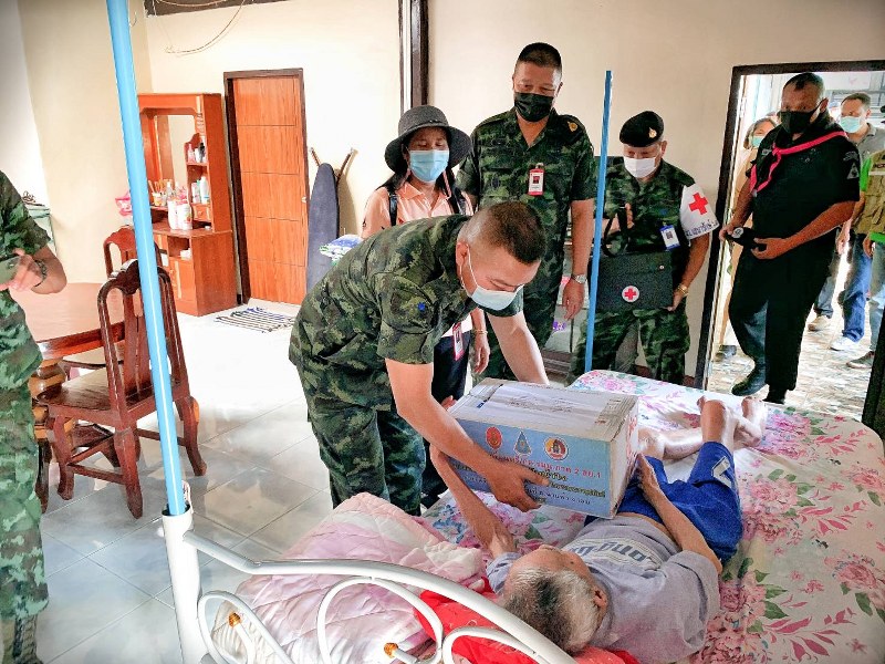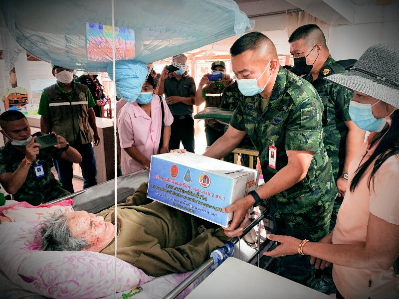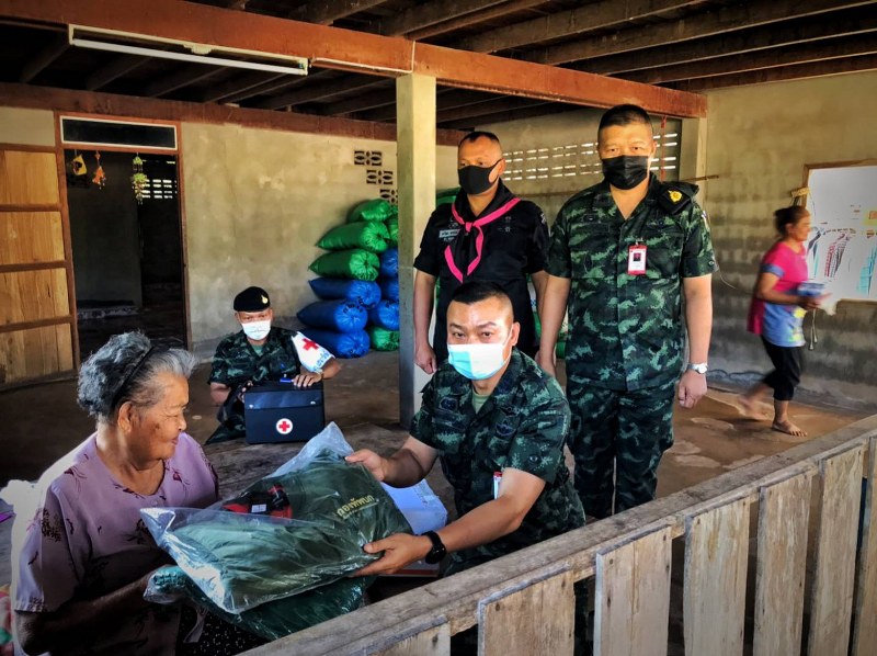 โดยจัดชุดแพทย์เคลื่อนที่ดูแลอาการถึงที่พักอาศัยตามบ้านเรือน พร้อมมอบผ้าห่มกันหนาว, เสื้อกันหนาว และกล่องปันน้ำใจ ให้กับผู้ป่วยฯ จำนวน 5 ราย ซึ่งป่วยเป็นโรค ได้แก่ อัมพฤกษ์ และพิการทางสายตา ในพื้นที่อำเภอนาแห้ว จังหวัดเลย โดย พี่น้องประชาชนในพื้นที่มีความรู้สึกดีใจที่มีหน่วยงานทหารและหน่วยงานภาครัฐ เข้าไปช่วยเหลือดูแลถึงพื้นที่.