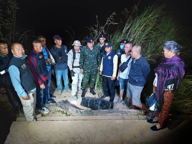 เจ้าหน้าที่ได้ทำการตรวจสอบบริเวณโดยรอบริมฝั่งโขงพบกระสอบปุ๋ย จำนวน 3 กระสอบขนาดใหญ่ ภายในเป็นยาเสพติดให้โทษประเภท 5 (กัญชา)แห่งอัดแท่ง ตรวจนับได้ประมาณ 126 แท่ง น้ำหนักประมาณ 126 กิโลกรัม เจ้าหน้าที่จึงได้ดำเนินการตรวจยึดกัญชาของกลางนำส่งพนักงานสอบสวน สภ.หว้านใหญ่เพื่อขยายผลสืบสวนนำตัวกลุ่มขบวนการ ค้ายาเสพติดข้ามชาติ 2 ฝั่งโขงกลุ่มนี้มาดำเนินการตามกฎหมายต่อไป.