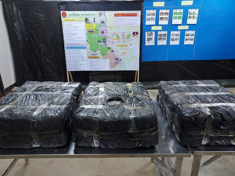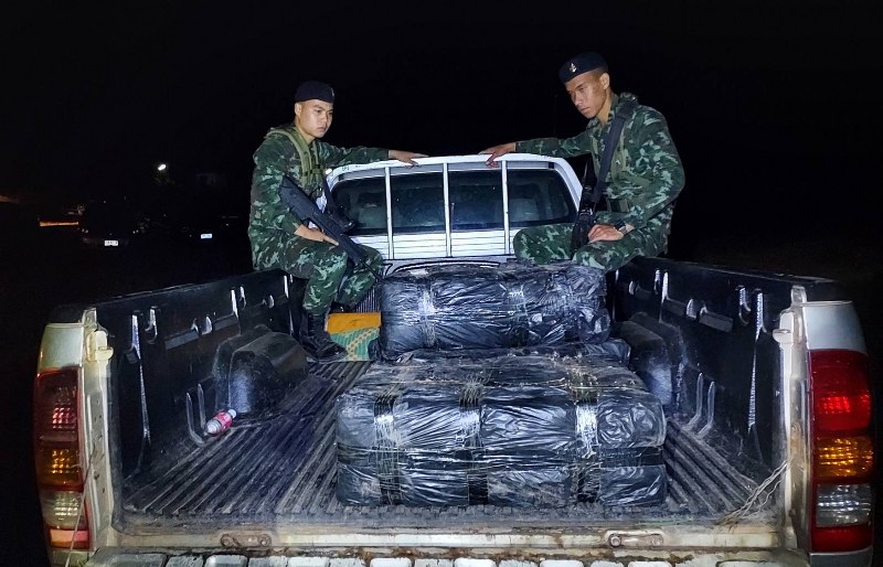 มุกดาหาร – ฝ่ายปกครองสนธิกำลังร่วมกองกำลังสุรศักดิ์มนตรี ฝ่ายความมั่นคง กอ.รมน. มุกดาหาร ตชด. สกัดจับยึดกัญชาแห่งอัดแท่งข้ามชาติจากเครือข่ายฝั่งประเทศเพื่อนบ้านลักลอบขนข้ามโขงเข้ามาแนวชายแดน ส่งให้เครือข่ายคนไทยถูกเจ้าหน้าที่สกัดจับยึดไว้ได้กัญชาแห้งอัดแท่งห่อด้วยถุงพลาสติกสีดำ 3 ห่อขนาดใหญ่ รวมกัญชาอัดแท่ง126แท่งน้ำหนักประมาณ 126 ก.ก.มูลค่า 2 ล้านบาท
