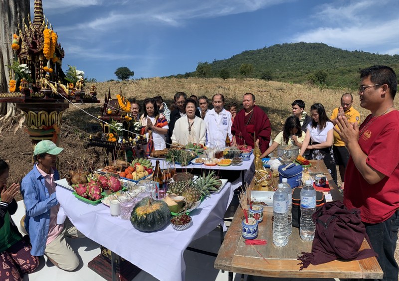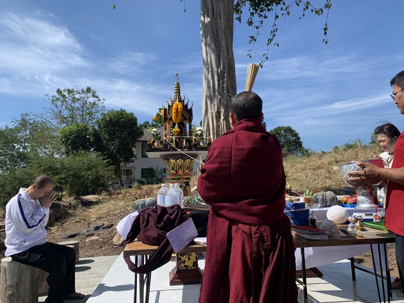 โดยวันนี้ครอบครัวเอี่ยมแจ้งพันธุ์ จึงได้นิมนต์พระมหาณรงค์ฤทธิ์ ญาณวิสิฏโฐ (ครูบาดวงดีศีลธรรม) วัดดวงดีมณีอินทรโชติ บ้านบันไดม้า ต.ปากช่อง อ.ปากช่อง จ.นครราชสีมา มาสวดพระพุทธมนต์ ซึ่งตลอดการทำพิธีมีลมพัดแรง อีกทั้งยังมีปรากฎการณ์พระอาทิตย์ทรงกลด ตลอดเวลาที่ประกอบพิธีตั้งศาล จนทุกคนที่มาร่วมงานรู้สึกอัศจรรย์ใจไปตามๆ กัน