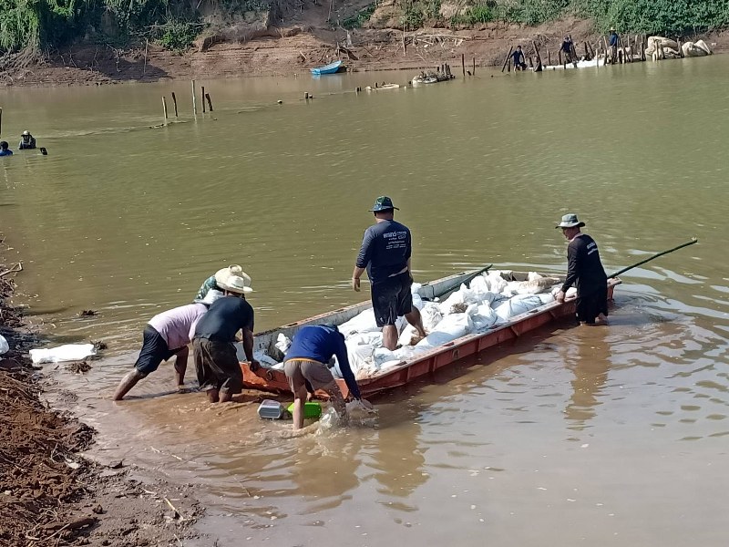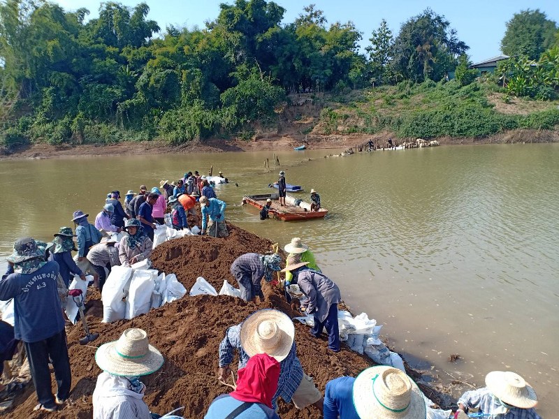 เกษตรกรชาวสุโขทัยรวมตัวกันสร้างพนังกั้นน้ำแม่น้ำยมหวั่นไม่พอใช้ในช่วงหน้าแล้ง