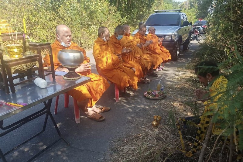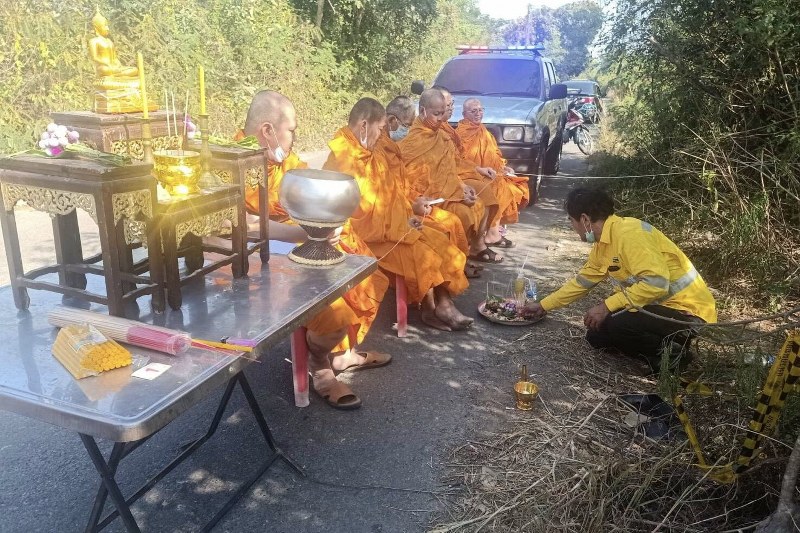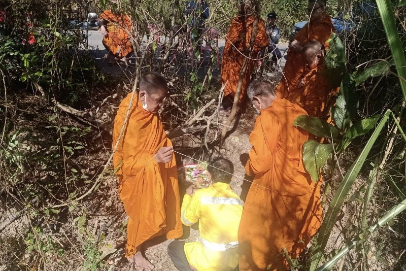 นครนายก – เจ้าของไร่อ้อยจัดพิธีทำบุญเลี้ยงพระ เนื่องจากไปพบโครงกระดูกปริศนาในไร่อ้อยของตนเอง