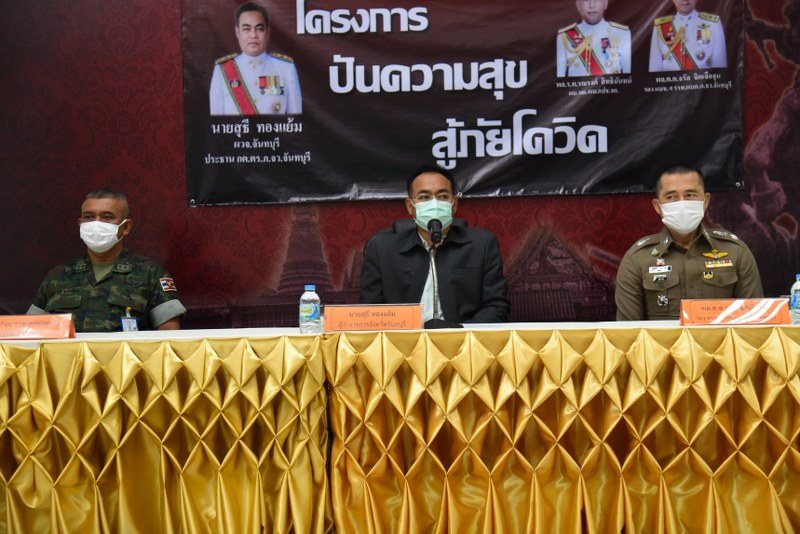 วันนี้ ( 13 ม.ค.64 ) ที่ สถานีตำรวจภูธรเมืองจันทบุรี นายสุธี ทองแย้ม ผู้ว่าราชการจังหวัดจันทบุรี พร้อมด้วย พลตำรวจตรี จรัล จิตเจือจุน รองผู้บัญชาการตำรวจภูธร ภาค3 รักษาราชการแทน ผู้บังคับการตำรวจภูธรจังหวัดจันทบุรีและ พลเรือตรี ปริญญาธรรม พูลพิทักษ์ ธรรม รองผู้บัญชาการป้องกันชายแดนจันทบุรีและตราด ร่วมแถลงข่าวเปิดโครงการความร่วมมือ “ปันความสุข สู้ภัยโควิด” แบ่งเบาภาระประชาชนในช่วงที่จังหวัดจันทบุรีกำลังได้รับผล กระทบจากการแพร่ระบาดอย่างหนักของโรคไวรัสโควิด-19 ซึ่งทำให้ส่งผลกระทบจากหลายๆ ด้าน