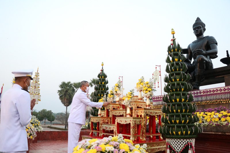วันนี้ (17 มกราคม 2564) เวลา 07.00 น. ที่ลานด้านหน้าพระบรมราชานุสาวรีย์พ่อขุนราม คำแหงมหาราช ภายในอุทยานประวัติศาสตร์สุโขทัย นายวิรุฬ พรรณเทวี ผู้ว่าราชการจังหวัดสุโขทัย พร้อมด้วย นางกนกพร พรรณเทวี นายกเหล่ากาชาดจังหวัดสุโขทัย, ผู้พิพากษา-หัว หน้าศาลจังหวัดสุโขทัย, ผู้บัญชาการมณฑลทหารบกที่ 33, ผู้บังคับบัญชาตำรวจภูธรจังหวัด, รองผู้ว่าราชการจังหวัดสุโขทัย, รองผู้อำนวยการกองอำนวยการรักษาความมั่นคงภายในจังหวัดสุโขทัย, สมาชิกสภาผู้แทนราษฎรจังหวัดสุโขทัย, หัวหน้าส่วนราชการ – ข้า ราชการ ประกอบพิธีงบวงสรวงพ่อขุนรามคำแหงมหาราช และบูรพกษัตริย์สุโขทัยทุกพระองค์ จากนั้นผู้แทนจากภาคส่วนต่างๆ ถวายพานพุ่มดอกไม้ ผู้ว่าราชการจังหวัดสุโขทัย กล่าวถวายราชสดุดี เนื่องในวันพ่อขุนรามคำแหงมหาราช ประจำปี 2564