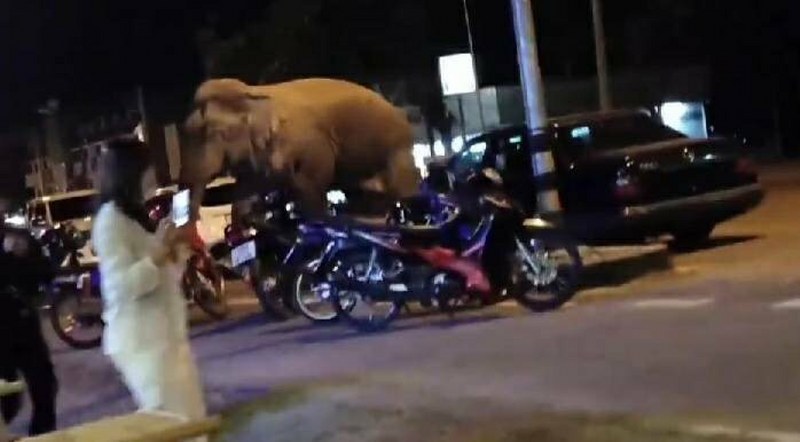 นครนายก – ช้างป่าเดินดิ่งจะเข้าร้านหมูกระทะ ลูกค้าหนีอลหม่าน