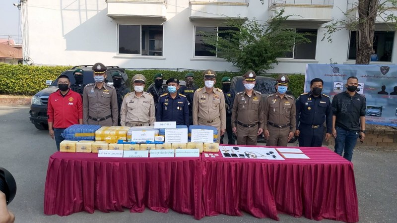 พร้อมด้วยของกลางเป็นยาบ้า 1,200,000 เม็ด, ยาไอซ์, ยาอี และยึดทรัพย์สินไว้ตรวจสอบตาม พ.ร.บ.มาตรการในการปราบปรามผู้กระทำความผิดเกี่ยวกับยาเสพติด พ.ศ. 2534 คือ รถยนต์ยี่ห้อโตโยต้า รุ่นฟอร์จูนเนอร์ สีดำ ติดแผ่นป้ายทะเบียน 1 กก 7265 กทม., รถ ยนต์ยี่ห้อฮอนด้า รุ่นซีวิค สีเทา ติดแผ่นป้ายทะเบียน 7 กษ 885 กทม., และรถยนต์ยี่ห้อฟอร์ด รุ่นเรนเจอร์ สีดำ ติดแผ่นป้ายทะเบียน ถง 6539 กทม., โทรศัพท์มือถือ, และพระเครื่อง โดยแจ้งข้อกล่าวหาให้ผู้ถูกจับทราบว่า “ ร่วมกันมียาเสพติดให้โทษประเภท 1 (ยาบ้า) ไว้ในความครอบครองเพื่อจำหน่ายโดยผิดกฎหมาย ”