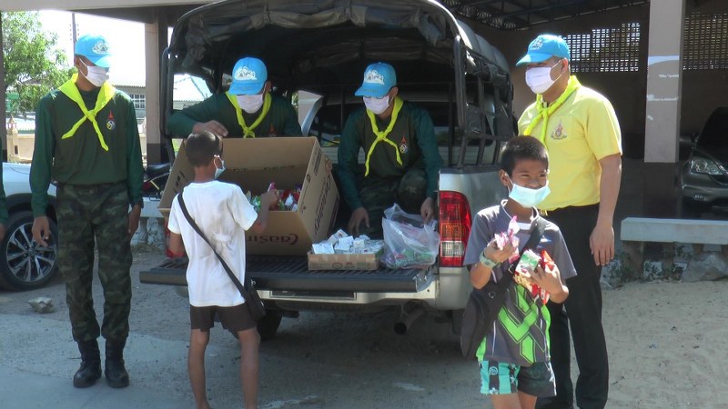 พร้อมทั้งยังได้จัดรถยนต์บรรทุกขนาดเล็ก พร้อมกำลังพลจิตอาสาฯ ออกตระเวนจากจ่าย ขนมอบกรอบ นมกล่อง และหน้ากากอนามัยแบบผ้า ซึ่งผลิตโดยสมาชิกชมรมแม่บ้านกอง พันทหารปืนใหญ่ต่อสู่อากาศยานที่ 3 ให้แก่ผู้ปกครอง และเด็กนักเรียน ในหมู่บ้านชุมชนรอบค่ายภูมิพล ตำบลเขาพระงาม เพื่อช่วยเหลือเป็นขวัญกำลังใจให้แก่ เด็กๆ ที่อยู่ระหว่างการเรียนออนไลน์ที่บ้าน