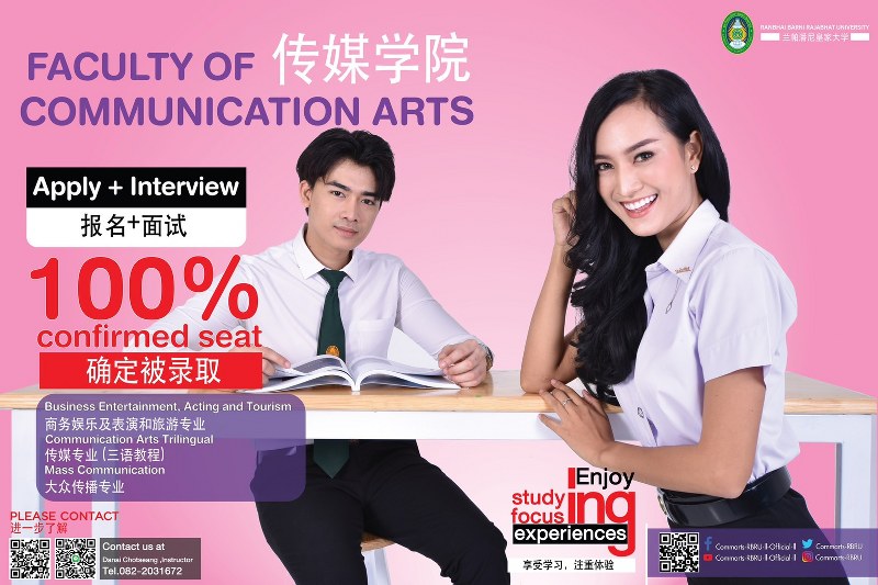 คณะนิเทศศาสตร์ มหาวิทยาลัยราชภัฏรำไพพรรณี ประกาศรับสมัครคัดเลือกบุคคลเข้าศึกษาระดับปริญญาตรี นิเทศศาสตร์(สามภาษา) เรียนภาษา ไทย, อังกฤษ,จีน แห่งเดียวในประเทศไทย