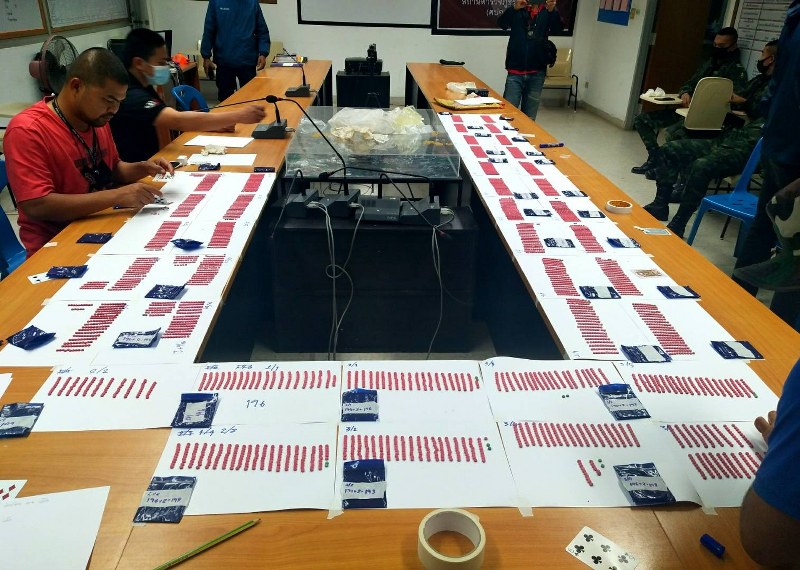 พล.ต.ต.สันติ เหล่าประทาย ผบก.ภ.จว.ศรีสะเกษ เปิดเผยว่า ก่อนหน้านี้เมื่อวันที่ 21 ม.ค. 64 ที่บริเวณป่าปาล์มทางทิศตะวันออกบ้านโนนมีชัย ต.หนองงูเหลือม อ.เบญจลักษ์ จ.ศรีสะเกษ เจ้าหน้าที่ ตร.ได้จับกุม นายศุภกร ไชยโคตร อายุ 22 ปี อยู่บ้าน เลขที่ 701 หมู่ที่ 20 ต.นอกเมือง อ.เมืองสุรินทร์ จ.สุรินทร์ พร้อมยาบ้าของกลางรวม 7,790 เม็ด ในฐานความผิดมียาเสพติดให้โทษประเภท 1(ยาบ้าฯ) ไว้ในครอบครองเพื่อจำหน่ายโดยผิดกฎหมาย จากการขยายผล นายศุภกร แจ้งข้อมูลกับ เจ้าหน้าที่ตำรวจชุดจับกุมว่า นายเอี่ยว ราษฎรบ้านหนองฮาง อ.เบญจลักษ์ จ.ศรีสะเกษ ทราบชื่อภายหลังคือ นายสนอง บุญคำ ผู้ต้องหารายนี้ มียาบ้าไว้ในครอบครองน่าจะมากกว่า 1 ลูก ( 3 มัด ประมาณ 6,000 เม็ด) ซึ่งเป็นลูกน้องของนายนุ้ย ราษฎรบ้านนาคำ ทราบชื่อภายหลังว่าคือ นายพงษ์พันธ์ ไชยโคตร ซึ่งทั้งสองคนไปรับงานยาบ้าจำนวนหลายลูก มาจากนายสังวร ทราบชื่อจริงภายหลังคือ นายประพันธ์ ประเคน อายุ 39 ปี เมื่อสัปดาห์ก่อน เชื่อว่าน่าจะยังมียาบ้าเหลืออยู่ จึงได้สั่งการให้เจ้าหน้าที่ ตร.ขยายผลไปจับกุมผู้ต้องหาได้พร้อมของกลางยาบ้าร่วม 8,000 เม็ด ซึ่งผู้ต้องหายอมรับว่า ได้รับยาบ้ามาจากนายนุ้ย จำนวน 1 ถุง (หรือ 200 เม็ด ) ไว้เพื่อเสพเป็นค่าตอบแทนในการเฝ้าเก็บรักษาดูแลยาบ้าที่ซุกซ่อนในที่เกิดเหตุ และได้เสพยาบ้ามาก่อนจริง โดยเสพยาบ้าจำนวน 4 – 5 เม็ดที่กระท่อมที่เกิดเหตุดังกล่าว