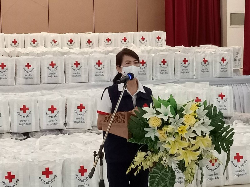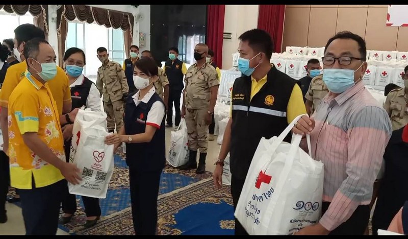 วันนี้ ( 26 ม.ค.) นางสุภาพร เทียนไชย นายกเหล่ากาชาดจังหวัดชลบุรี เป็นประธานในการมอบชุดธารน้ำใจกู้ชีวิตฝ่าวิกฤตโควิด 19 จากสภากาชาดไทย ให้แก่ผู้ที่กักตัวในพื้นที่อำเภอศรีราชา จังหวัดชลบุรี จำนวน 1,253 ชุดให้กับกำนัน ผู้ใหญ่บ้าน องค์กรปกครองส่วนท้องถิ่น อสม. นำไปมอบให้กับผู้ที่กักตนเองอยู่กับบ้านเป็นเวลา 14 วันในช่วงการแพร่ระบาดของไวรัสโควิด 19 เพื่อเป็นการช่วยเหลือ เยียวยา แบ่งเบาภาระให้กับผู้ที่ติดเชื้อโควิด 19 ที่ไม่สามารถออกไปดำเนินชีวิตร่วมกับผู้อื่นได้ ทั้งยังไม่มีรายได้ในช่วงที่จะต้องกักตัวในพื้นที่ ซึ่งภายในชุดธารน้ำใจนั้นมีทั้งข้าวสาร อาหารแห้ง เครื่องอุปโภค ปลากระป๋อง น้ำดื่ม เจลล้างมือ และหน้ากากอนามัย โดยมี นายธวัชชัย ศรีทอง รองผู้ว่าราชการจังหวัดชลบุรี นายดงพล รุจิธรรมธัช นายอำเภอศรีราชา นายกมณต์ อินทรวิจิตร สาธารณสุขอำเภอศรีราชา เข้าร่วมในพิธี ณ อาคารศรีราชาประชาคม ที่ว่าการอำเภอศรีราชา จังหวัดชลบุรี