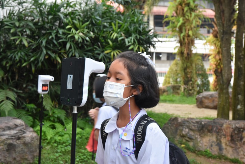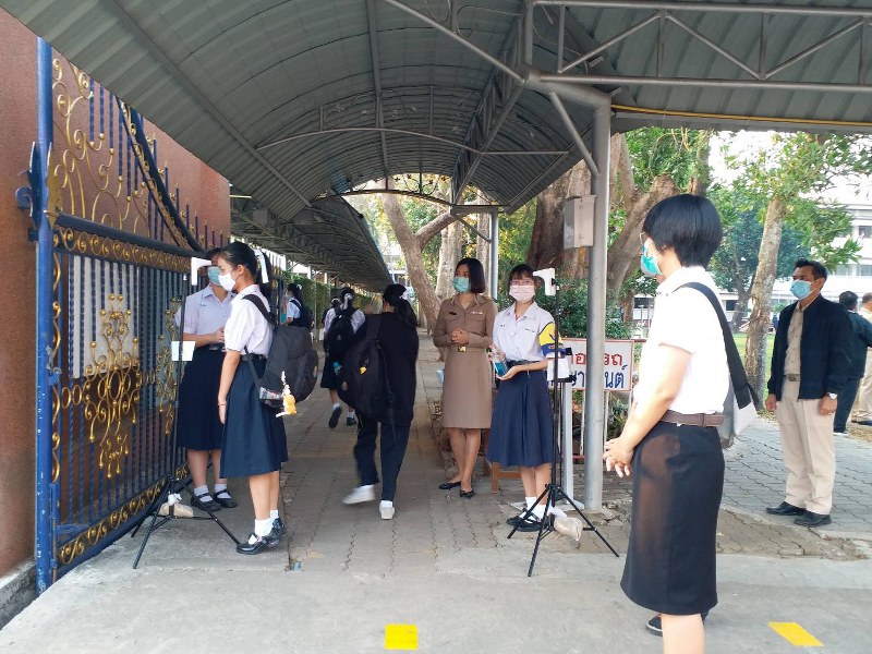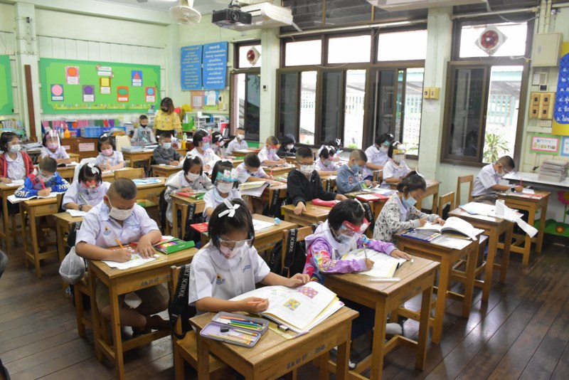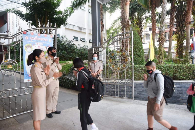 บรรยากาศเปิดเรียนวันแรกหลังผ่อนคลาย นักเรียนดีใจได้เจอหน้าเพื่อน ๆ ทางโรงเรียนวางมาตรการเข้มคัดกรองป้องกันโควิด -19 เน้นไม่ใช้สิ่งของสัมผัสร่วมกัน จัดชั้นเรียนระยะห่าง สวมหน้ากากอนามัยตลอดเวลา