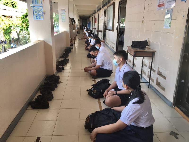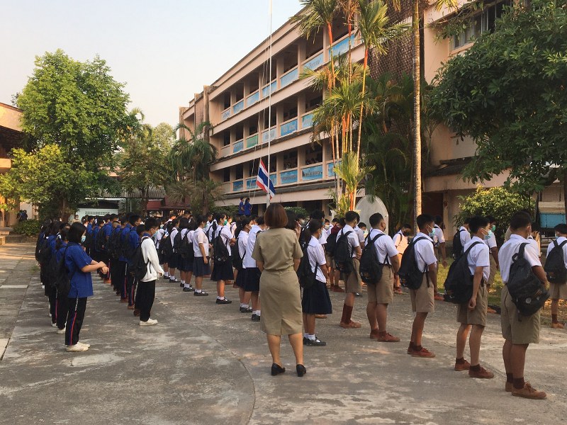 ส่วนผู้ปกครองที่มารับบุตร หลาน ตอนเลิกเรียนช่วงเย็นขอให้อยู่ในพื้นที่ด้านนอกที่ทางโรงเรียนจัดเตรียมไว้ และตามจำนวนตามมาตรการเว้นระยะห่าง ไม่อนุญาตให้ไปรอรับที่ตึก หรือพื้นที่ใกล้ห้องเรียนโดยเด็ดขาด ขอความร่วมมือผู้ปกครองนัดแนะ บุตร หลาน ในจุดที่จะมารับกลับบ้านและเมื่อเจอกันแล้วก็ให้รับกลับออกไปจากโรงเรียนอย่างรวดเร็วหลีกเลี่ยงการเสี่ยง