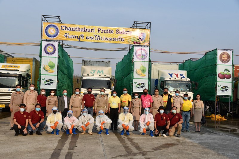 ผู้ว่าราชการจังหวัดจันทบุรีกล่าวว่า หลังจากจังหวัดจันทบุรี สามารถจัดการกับการแพร่ระบาดในพื้นที่ ด้วยมาตรการเชิงรุก เอกซเรย์กลุ่มเสี่ยง จนสามารถนำผู้ติดเชื้อมาทำการรักษาจนหาย และจนปัจจุบันไม่พบผู้ติดเชื้อรายใหม่แล้ว ตอนนี้เป็นช่วงของฤดูกาลผลไม้ที่จะออกสู่ท้องตลาด โดยเฉพาะทุเรียน ที่สามารถสร้างรายได้ให้กับประเทศได้มหาศาล จึงได้วางมาตรการบนมาตรฐานหลักความสะอาด ปลอดภัย ทั้งการผลิตภายในสวน ที่เน้นมาตรฐาน GAP และการป้องกันโควิด การบรรจุหีบห่อและคัดแยกของผู้ประกอบการส่งออก (ล้ง) ตามมาตรฐาน GMP และการป้องกันโควิด และสุดท้ายการขนส่งและระบบโลจิสติกส์ ที่ต้องสะอาดทั้งภายในและภายนอกเช่นเดียวกัน เพื่อให้คู่ค้าและผู้บริโภคเกิดความเชื่อมั่น