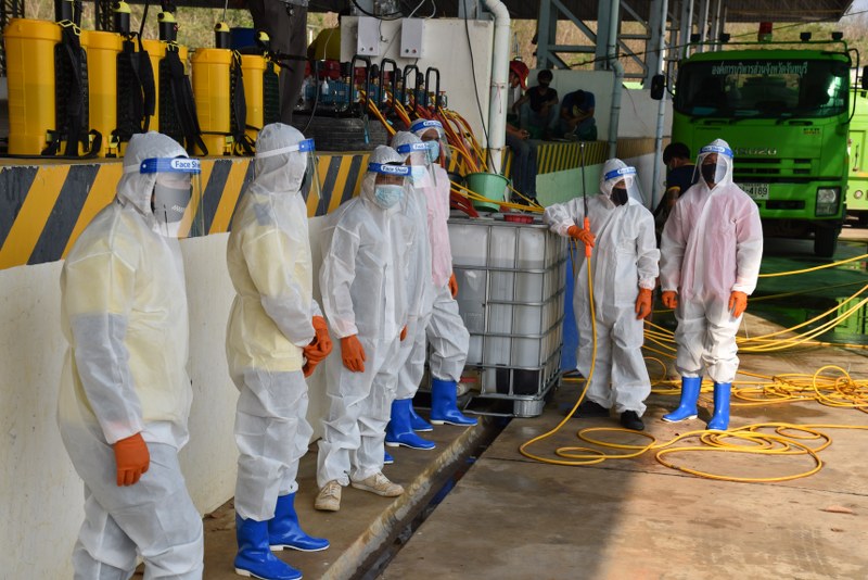 ที่ลานขนถ่ายสินค้า องค์การบริหารส่วนจังหวัดจันทบุรี นายสุธี ทองแย้ม ผู้ว่าราชการจังหวัดจันทบุรี นายธนพล กิจกาญจน์ นายกองค์การบริหารส่วนจังหวัดจันทบุรี ประธานสันนิบาตเทศบาลจังหวัดจันทบุรี ประธานสภาอุตสาหกรรมจังหวัดจันทบุรี สมาคมผู้ประการส่งออกทุเรียน มังคุด ได้จัดแถลงข่าวและสาธิตการฉีดพ่นน้ำยาทำความสะอาดรถบรรทุกตู้คอน เทนเนอร์ขนส่งผลไม้สินค้าเพื่อการส่งออก ตามมาตรการเฝ้าระวังและป้องกันแพร่ระบาดของโรคติดเชื้อโควิด-19 เนื่องจากจังหวัดจันทบุรี จังหวัดต้นทางของการผลิตผลไม้ประสบกับการแพร่ระบาดของไวรัสโควิด-19 ส่งผลต่อความเชื่อมั่นของประเทศคู่ค้าต่างประเทศ จึงได้สาธิตกระบวนการทำความสะอาดรถบรรทุกในครั้งนี้ขึ้น ซึ่งเป็นเพียง 1 ในอีกหลายๆมาตรการ ในการสร้างความสะอาด สร้างความปลอดภัยจากเชื้อโควิด-19