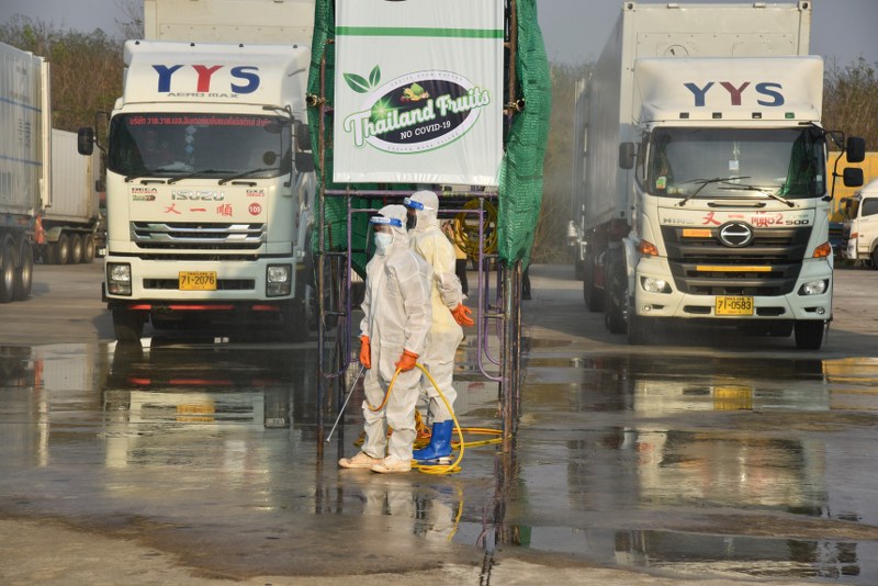 ทั้งนี้การฉีดพ่นน้ำยาฆ่าเชื้อสร้างความมั่นใจผู้บริโภค ทำความสะอาดรถขนส่งทุกคันที่เข้ามาขนส่งผลไม้ของจังหวัดจันทบุรีออกไปตลาดปลายทางจะต้องผ่านการฆ่าเชื้อโรคที่จุดบริการ ณ ลานขนถ่ายสินค้าองค์การบริหารส่วนจังหวัดจันทบุรี ถึงจะได้รับใบรับรองผ่านการพ่นน้ำยาฆ่าเชื้อไวรัสโควิด-19 ของสมาคมผู้ประการส่งออกทุเรียน มังคุด แห่งประเทศไทยไม่เช่นนั้นล้งจะไม่อนุญาตให้รถขนส่งขึ้นผลไม้ โดยเปิดช่องบริการไว้ทั้งหมด 5 ช่อง ทำงานตลอด 24 ชั่วโมง นอกจากการพ่นฆ่าเชื้อรถขนส่งแล้ว พนักงานขับรถต้องผ่านการคัดกรอง ตรวจวัดอุณหภูมิร่างกาย ในคราวเดียวกัน