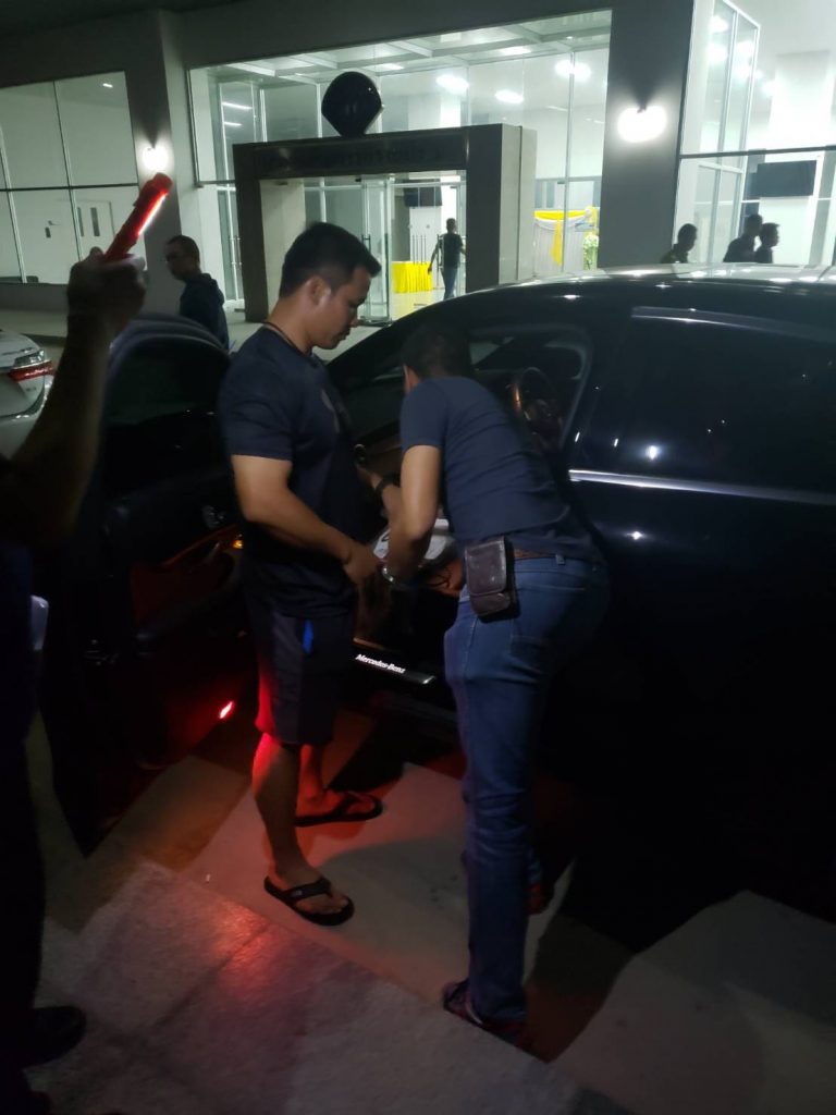 พล.ต.ต.จิรภพฯ กล่าวว่า ก่อนหน้านี้ได้มีผู้ให้ข้อมูลว่า เมื่อวันที่ 21 ก.ค.62 ที่๋ผ่านมา ได้มีผู้ขับรถเบนซ์ป้ายแดงเข้าไปฝากจอดที่อาคารจอดรถสนามบินดอนเมือง พร้อมอ้างตัวว่าเป็น “ผู้การกองปราบฯ” และจะมารับรถในวันที่ 22 ก.ค.62 สงสัยว่ารถคันดังกล่าว น่าจะมีสิ่งของผิดกฎหมายซุกซ่อนอยู่ หลังทราบเรื่องตนก็สั่งการให้ชุดสืบสวนกองปราบฯ ทำการตรวจสอบทันที โดยเมื่อเวลาประมาณ 18.05 น.วันที่ 22 ก.ค.62 ที่ผ่านมา พบผู้ต้องหาขับรถคันดังกล่าว ติดแผ่นป้ายทะเบียน (ป้ายแดง) ต 9345 กทม. ออกมาจากอาคารที่จอดรถ ภายในประเทศ เจ้าหน้าที่จึงแสดงตัวเข้าตรวจสอบทันที ภายในรถพบนายณัฐพงษ์ฯ เป็นคนขับ ตรวจสอบแล้วไม่ได้เป็นตำรวจตามที่กล่าวอ้าง จึงเข้าตรวจค้นรถ พบปืนกล็อค 3 กระบอก โค้ลท์ 1 กระบอก .380 อีก 1 กระบอก กระสุนปืนอีก 116 นัด อุปกรณ์ส่วนควบอาวุธปืนอีกส่วนหนึ่งอยู่บริเวณท้ายรถ เมื่อค้นอย่างละเอียดยังพบเงินสดอยู่ในกระเป๋าเดินทางอีก 2 กระเป๋า เป็นเงินประมาณ 4 ล้านบาท อุปกรณ์เสพยาเสพติด 1 ชุด และยาไอซ์อีกประมาณ 0.52 กรัม ซุกซ่อนอีกด้วย จึงควบคุมตัวนายณัฐพงษ์ฯ ไปตรวจหาสารเสพติด ก็พบว่ามีสารเสพติดในร่างกาย ก่อนควบคุมตัวมาดำเนินคดี