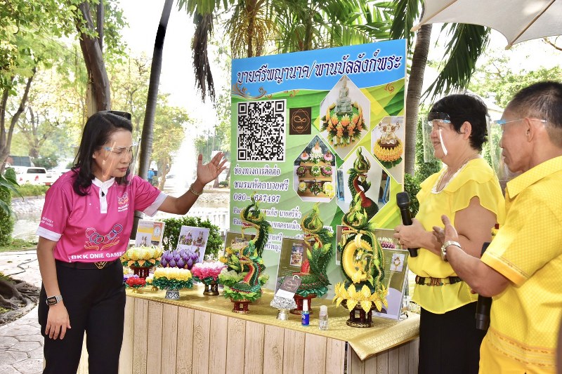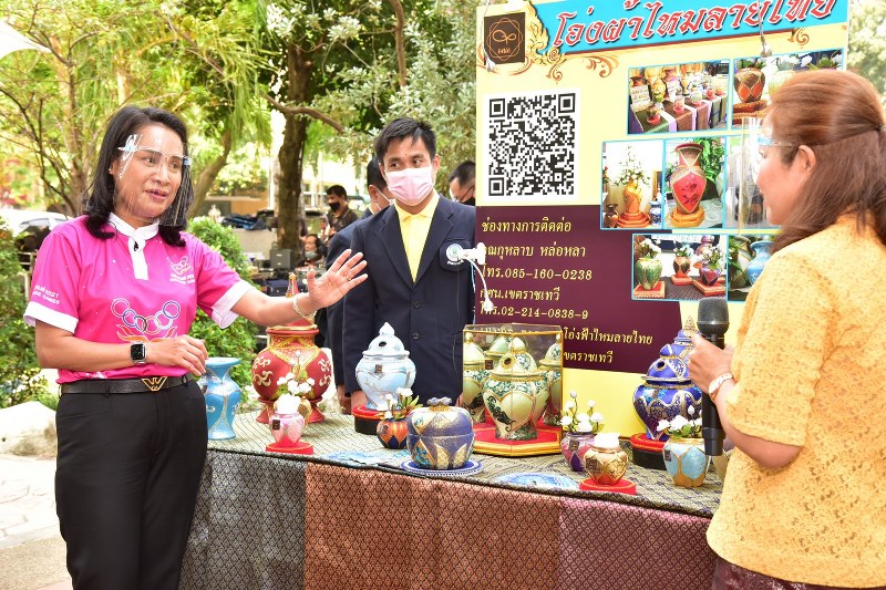 จากนั้น รมช.ศธ. ได้นำชมผลิตภัณฑ์/สินค้า พรีเมี่ยม (กศน.) ที่พัฒนาโดยศูนย์ฝึกอาชีพชุมชน กศน.กรุงเทพมหานคร ที่สร้างงานสร้างรายได้ให้กับคนในชุมชนที่อาศัยอยู่ในเขตต่างๆของกรุงเทพฯ หลายชิ้นงานเป็นงานหัตถศิลป์ที่สืบสานวัฒนธรรมไทยจากภูมิปัญญาดั้งเดิมที่มีการประยุกต์ใช้วัสดุที่มีความคงทนต่อการใช้งาน และหาได้ง่ายในพื้นที่ อาทิ บายศรีพญานาค/พานบัลลังก์พระ จาก (กศน.) เขตดอนเมือง ซึ่งประดิษฐ์จากผ้าแทนการใช้ใบตอง มีระยะเวลาในการใช้งานนาน คงไว้ซึ่งความสวยงาม,โถประกายกนก ผลงานของ (กศน.เขตบางแค) เป็นงานลงรักปิดทอง แต่ปัจจุบันราคายางรักค่อนข้างสูงและมีขั้นตอนในการทำที่ยุ่งยาก จึงลดต้นทุนโดยการใช้ดินที่ใช้สำหรับการทำดอกไม้ประดิษฐ์มาเป็นวัสดุทดแทน จุดเด่นของผลิตภัณฑ์นี้ คือการประยุกต์นำเอาเอกลักษณ์ความเป็นไทยมาใส่ลงบนผลิตภัณฑ์เกิดเป็น ผลิตภัณฑ์ชิ้นใหม่ๆ ที่มีอัตลักษณ์ความเป็นไทยเฉพาะตัว ส่วนโอ่งผ้าไหมลายไทย จากผ้าไหมบ้านครัว เป็นผลงาน นักศึกษากศน.จากเขตราชเทวี,ผ้ามัดย้อมจากดอกดาวเรือง ของ (กศน.เขตธนบุรี)