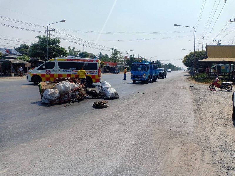 ที่ริมถนนพบรถจักรยานยนต์ยี่ห้อ ฮอนด้า เวฟ สีแดง หมายเลขทะเบียน กลท-906 ลพบุรี สภาพด้านหน้าพังยับ มีผู้ได้รับบาดเจ็บจำนวน 2 ราย ทราบชื่อนายณันธวัฒน์ เพ็ชรประสม อายุ 18 ปี และ น.ส.พลอยพรรณรายณ์ อยู่เจริญ อายุ 16 ปี ได้รับบาดเจ็บ ใกล้กันพบรถซาเล้ง เก็บของเก่าพลิกคว่ำ ของเก่ากระจายเกลื่อนถนน พบนายพรมมา ปานสะอาด อายุ 81 และนางจำปี ปานสะอาด อายุ 72 ปี ซึ่งได้รับบาดเจ็บเช่นกัน ถูกนำตัวส่ง รพ.โคกสำโรง ทั้ง 4 ราย