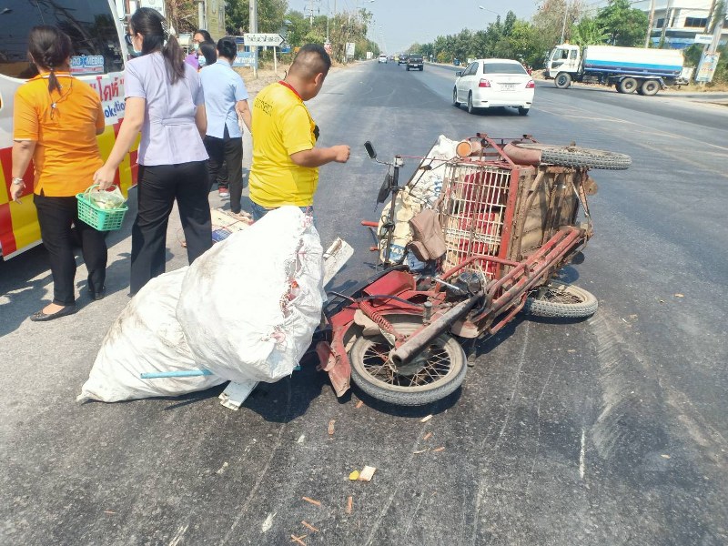 ลพบุรี – คลิปหลานขับจักรยานยนต์หลับในชนท้ายซาเล้งตายายกระเด็นเจ็บ 4 รา ย