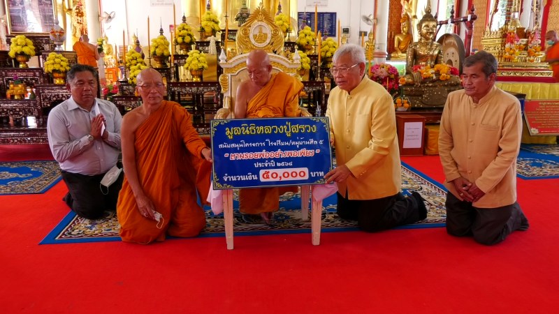 ในการนี้ พระครูโกศลสิกขกิจ เจ้าคณะอำเภอภูสิงห์ ประธานมูลนิธิหลวงปู่สรวงวัดไพรพัฒนา ได้มอบเงินสนับสนุน โครงการโรงเรียน/หมู่บ้านศีล 5 ตามรอยพ่ออย่างพอเพียง ประจำปี 2564 จำนวน 50,000 บาทอีกด้วย