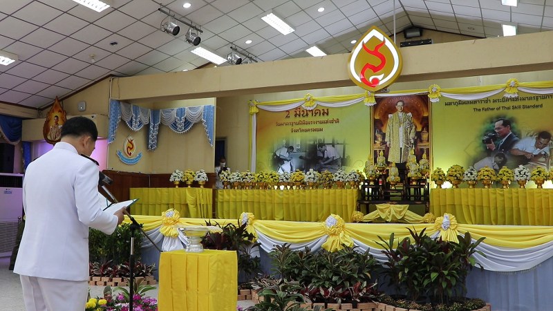 วันที่ 2 มีนาคม 2564 ที่หอประชุมศรีโคตรบูรณ์ วิทยาลัยพยาบาลราชชนนี นครพนม นายไกรสร กองฉลาด ผู้ว่าราชการจังหวัดนครพนม เป็นประธานนำคณะหัวหน้าส่วนราชการ รัฐวิสาหกิจ สมาชิกสภาผู้แทนราษฎร เจ้าหน้าที่ ผู้ประกอบการ และแรงงงาน ประกอบพิธีวางพานพุ่มดอกไม้สดถวายราชสักการะ พระบาทสมเด็จพระบรมชนกาธิเบศร มหาภูมิพลอดุลยเดชมหาราช บรมนาถบพิตร พระบิดาแห่งมาตรฐานการช่างไทย เนื่องในวันมาตรฐานฝีมือแรงงานแห่งชาติ ประจำปี 2564