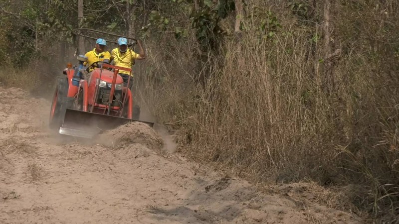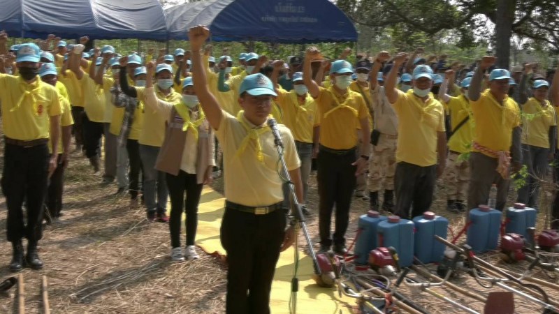 ศรีสะเกษ – จิตอาสาพระราชทานอำเภอเบญจลักษ์ ทำแนวป้องกันไฟป่า” ในพื้นที่ป่าชุมชนบ้านโนนสำโรง