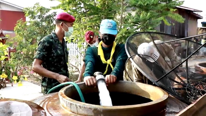 วันที่ 11 มี.ค. 2564 สถานการณ์ภัยแล้งในจังหวัดลพบุรี เริ่มทวีความรุนแรง โดยเฉพาะในพื้นที่ห่างไกล นอกเส้นทางการส่งน้ำ ของกรมชลประทาน อย่างในพื้นที่ ตำบลบางพึ่ง อ.บ้านหมี่ จังหวัดลพบุรี ซึ่งการช่วยเหลือล่าสุด หน่วยบัญชาการสงครามพิเศษ ได้จัดกำลังพลจิตอาสาพระราชทาน เราทำความดี เพื่อชาติ ศาสตร์ กษัตริย์ พร้อมด้วยรถบรรทุกน้ำ ขนาด 10,000 ลิตร จากศูนย์บรรเทาสาธารณภัย กองพันปฏิบัติการจิตวิทยา ค่ายสมเด็จพระนารายณ์มหาราช นำน้ำดื่มสะอาดเพื่อการอุปโภค และบริโภค ซึ่งได้รับน้ำมาจากสำนักงานประปาส่วนภูมิภาค สาขา อำเภอบ้านหมี่ ตามโครงการ “ราษฎร์ รัฐ ร่วมใจช่วยภัยแล้ง” ออกตะเวนหมุนเวียนแจกจ่ายน้ำ ช่วยเหลือผู้ประสบภัยแล้ง ในพื้นที่ อย่างต่อเนื่อง เฉลี่ยวันละ 3 เที่ยว รวมจำนวน 30,000 ลิตร ตามที่องค์การบริหารส่วยตำบลบางพึ่ง ได้ทำหนังสือร้องขอ เพื่อบรรเทาความเดือดร้อนในเบื้องต้น หลังจากน้ำสำรองในภาชนะ ซึ่งใช้กักเก็บน้ำฝนของประชาชนในแต่ละบ้านได้แห้งขอด ไม่เพียงพอต่อการอุบโภคบริโภค มาเป็นเวลานานแล้วเช่นกัน