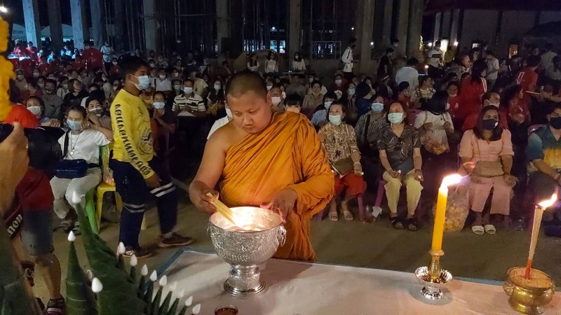 และขณะที่โดยพระครูปลัดธนะโรจน์ ปัญญาวชิโร (พระอาจารย์หมู) ได้จุดเทียน ธูป บูชา พ่อปู่ศรีสุทโธนาคราช และพ่อปู่มุจรินนาคราช จากนั้นได้มีการหยดน้ำตาเทียนลงในขันน้ำมนต์ ท่ามกลางชาวบ้านที่เข้ามาร่วมพิธีอย่างใจจดใจจ่อ และช่วงขณะที่หลังจากเสร็จพิธี ชาวบ้านที่เข้าร่วมพิธีบวงสรวงพ่อปู่ศรีสุทโธนาคราช และพ่อปู่มุจรินนาคราช ต่างเข้ามาส่องเลขเด็ดจากดอกน้ำมนต์ในขันน้ำมนต์ บางรายก็ได้นำโทรศัพท์มือถือมาถ่ายดอกน้ำมนต์เพื่อนำไปหาซื้อลอตเตอรี่เพื่อเสี่ยงโชค ซึ่งหลายคนได้โชคจากพิธีขอขมากรรมและเลขเด็ดในขันน้ำมนต์ วัดหนองทองติดต่อกันมาแล้วถึง 6 งวด ทั้งนี้ชาวบ้านที่ได้โชคจากงวดที่แล้วได้จ้างวงดนตรีมาแสดงเพื่อแก้บนอีกด้วย