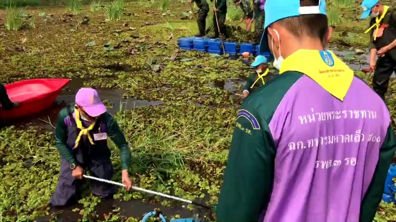 ศูนย์บรรเทาสาธารณภัยหน่วยบัญชาการสงครามพิเศษ จัดกำลังพลจิตอาสาพระราชทาน “เราทำความดี เพื่อชาติ ศาสน์ กษัตริย์” จาก กองพันปฏิบัติการพิเศษรักษาพระองค์ กรมรบพิเศษที่ 3 รักษาพระองค์ ค่ายเอราวัณ ต.เขาสามยอด อ.เมือง จ.ลพบุรี จำนวน 14 นาย ร่วมทำกิจกรรม “จิตอาสา พัฒนาสิ่งแวดล้อม” ด้วยการ เก็บกำจัดวัชพืช จอก แหน ในแหล่งน้ำขนาดใหญ่ ภายในพื้นที่ชุมชนเอราวัณ 32 ต.เขาสามยอด อ.เมือง จ.ลพบุรี เพื่อเป็นการอนุรักษ์สิ่งแวดล้อม และแหล่งน้ำ ป้องกันการตื้นเขินของแหล่งน้ำชุมชนในช่วงหน้าแล้ง ตลอดจนเพื่อให้สัตว์น้ำสามารถขึ้นสู่ผิวน้ำ หายใจได้สะดวก และเป็นแหล่งน้ำที่ใสสะอาด มีภูมิทัศน์สวยงาม และเกิดประโยชน์ส่วนรวมกับชุมชนรอบค่าย ซึ่งถือเป็นการทำกิจกรรมจิตอาสาอย่างต่อเนื่อง