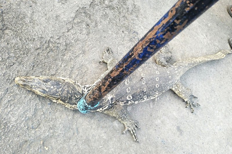 ศูนย์วิทยุสว่างอริยะนครนายก ได้รับแจ้งจาก นายตี๋ วิศิษฏ์เจริญ เจ้าของร้านซ่าหริ่มทับทิ่มกรอบ ว่ามีตัวเงินตัวทองวิ่งมาเข้าร้าน บริเวณถนนสุวรรณ ก่อนถึง 5 แยกธนาคารทหารไทย เจ้าหน้าที่กู้ภัยสว่างอริยะนครนายก จึงไปยังที่รับแจ้งพบตึกอาคารพานิช 4 ชั้นเปิดเป็นร้านขายซ่าหริ่มทับทิ่มกรอบ ภายในร้านใต้โต๊ะพบลูกตัวเงินตัวทองซกตัวอยู่ใกล้เตาถ่านเจ้าหน้าที่กู้ภัยฯจึงใช้อุปกรณ์ที่นำมาเข้าคล้องคอลูกตัวเงินตัวทองออกมานอกร้าน ลูกตัวเงินตัวทองมีความยาว 30 เซนติเมตร น้ำหนัก 8 กิโลกรัม เพื่อนำไปปล่อยยังแหล่งธรรมชาติต่อไป