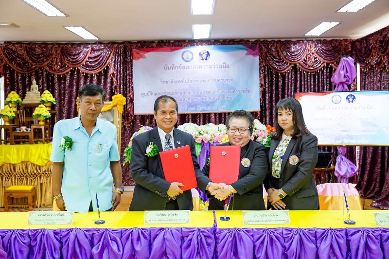 นครนายก – พิธีลงนามความร่วมมือ ระหว่าง วิทยาลัยเทคโนโลยีพณิชยการนครนายก กับศูนย์อบรมเด็กและเยาวชนเขต 3 จังหวัดนครราชสีมา กรมพินิจและคุมครองเด็กและเยาวชน