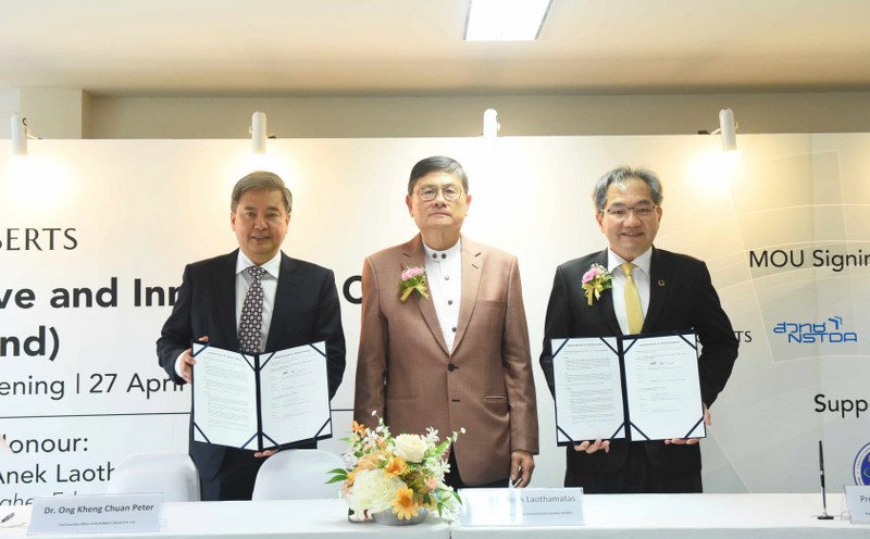 เมื่อวันที่ 27 เมษายน 2566 : สำนักงานพัฒนาวิทยาศาสตร์และเทคโนโลยีแห่งชาติ (สวทช.) โดยเมืองนวัตกรรมอาหาร แพลตฟอร์ม Flavor Academy ลงนามความร่วมมือกับบริษัท เค เอช โรเบิร์ต จำกัด ประเทศสิงคโปร์ เพื่อขยายขีดความสามารถด้านนวัตกรรมกลิ่นรสในประเทศไทย โดยได้รับเกียรติจาก ศาสตราจารย์(พิเศษ) ดร.เอนก เหล่าธรรมทัศน์ รัฐมนตรีว่าการกระทรวงการอุดมศึกษา วิทยาศาสตร์ วิจัยและนวัตกรรม เป็นประธาน โดยมี ศาสตราจารย์ ดร.ชูกิจ ลิมปิจำนงค์ ผู้อำนวยการสำนักงานพัฒนาวิทยาศาสตร์และเทคโนโลยีแห่งชาติ (สวทช.) และนายปีเตอร์ เค.ซี.ออง (Dr. Peter K.C. Ong) ซีอีโอ บริษัท เค เอช โรเบิร์ต จำกัด ประเทศสิงคโปร์ ร่วมลงนาม ณ ห้อง Creative and Innovation Center สถาบันค้นคว้าและพัฒนาผลิตผลทางการเกษตรและอุตสาหกรรมเกษตร มหาวิทยาลัยเกษตรศาสตร์ กรุงเทพฯ
