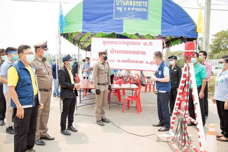 วันที่ 25 มีนาคม 2563 ตั้งแต่เวลา 10.30 น. นายไมตรี ไตรติลานันท์ ผู้ว่าราชการจังหวัดสุโขทัย พร้อมคณะได้ลงพื้นที่ตำบลท่าฉนวน อำเภอกงไกรลาศ จังหวัดสุโขทัย เพื่อตรวจเยี่ยม ให้กำลังใจมอบหน้ากากอนามัยและสิ่งของอุปโภคบริโภคจากเหล่ากาชาดจังหวัดสุโขทัยให้กับเจ้าหน้าที่ผู้ปฏิบัติงาน ณ จุดตรวจคัดกรองเฝ้าระวังป้องกันการแพร่ระบาดของไวรัส COVID-19 เขตรอยต่อหมู่บ้านที่ได้มีประกาศเป็นพื้นที่การควบคุมโรค ประกอบด้วย หมู่2 บ้านหนองบัว หมู่ 9 บ้านคลองยาง หมู่ 11 บ้านหล่ายปอแดง ตำบลท่าฉนวน จังหวัดสุโขทัย โดยในแต่ละด่านจะมีเจ้าหน้าที่ตำรวจ สาธารณสุข อสม. ฝ่ายปกครอง ทำการซักถามจดชื่อรายละเอียดต่างๆ พร้อมตรวจวัดตรวจวัดอุณหภูมิร่างกายคนขับและผู้โดยสารรถที่ผ่านเข้าออกในเส้นทางทุกคันตลอด 24 ชั่วโมง